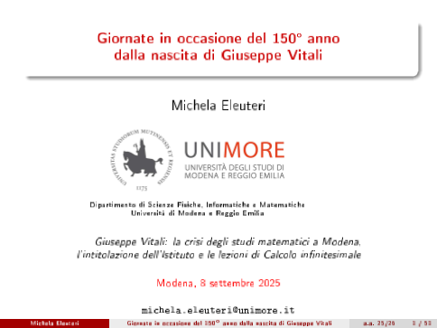 Giornate in occasione del 150° anno dalla nascita di Giuseppe Vitali